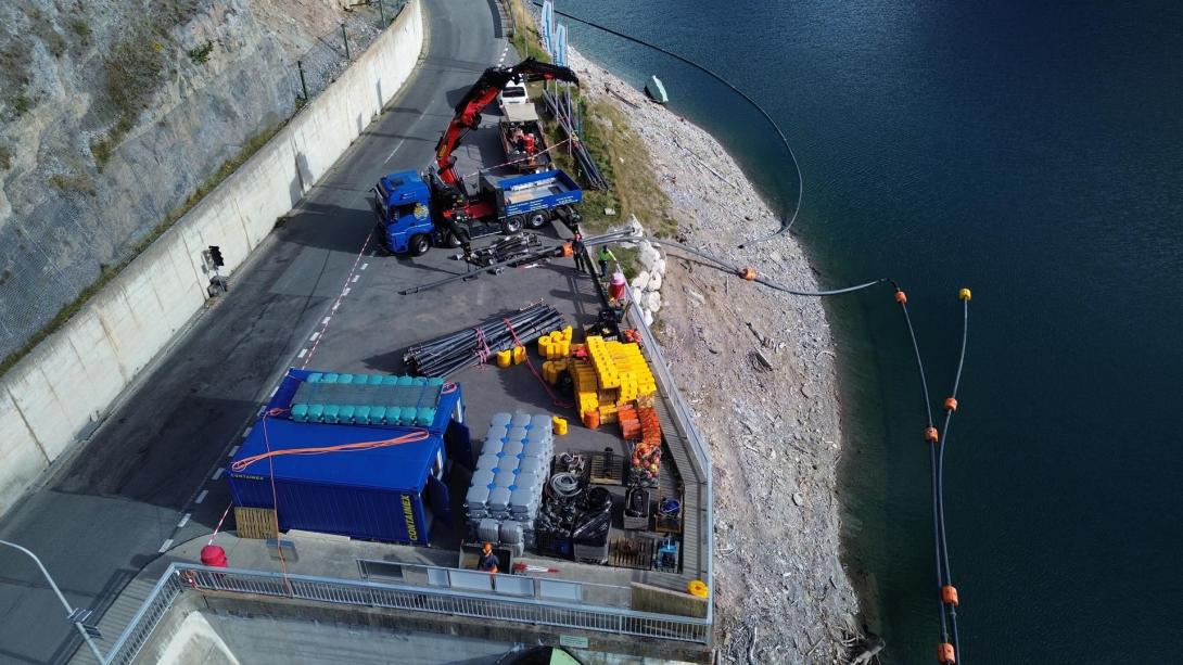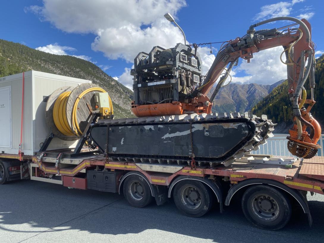 Die Engadiner Kraftwerke AG (EKW) führt derzeit am Grundablass der Staumauer Punt dal Gall im Livignostausee Unterhaltsarbeiten durch. Der Grundablass ist ein zentrales Sicherheitsorgan der Stauanlage, das im Notfall eine kontrollierte Entleerung des Stausees ermöglicht. Für die Unterwasserarbeiten, zur Sedimentfreilegung des Grundablasses, kommt ein ferngesteuerter Bagger zum Einsatz.